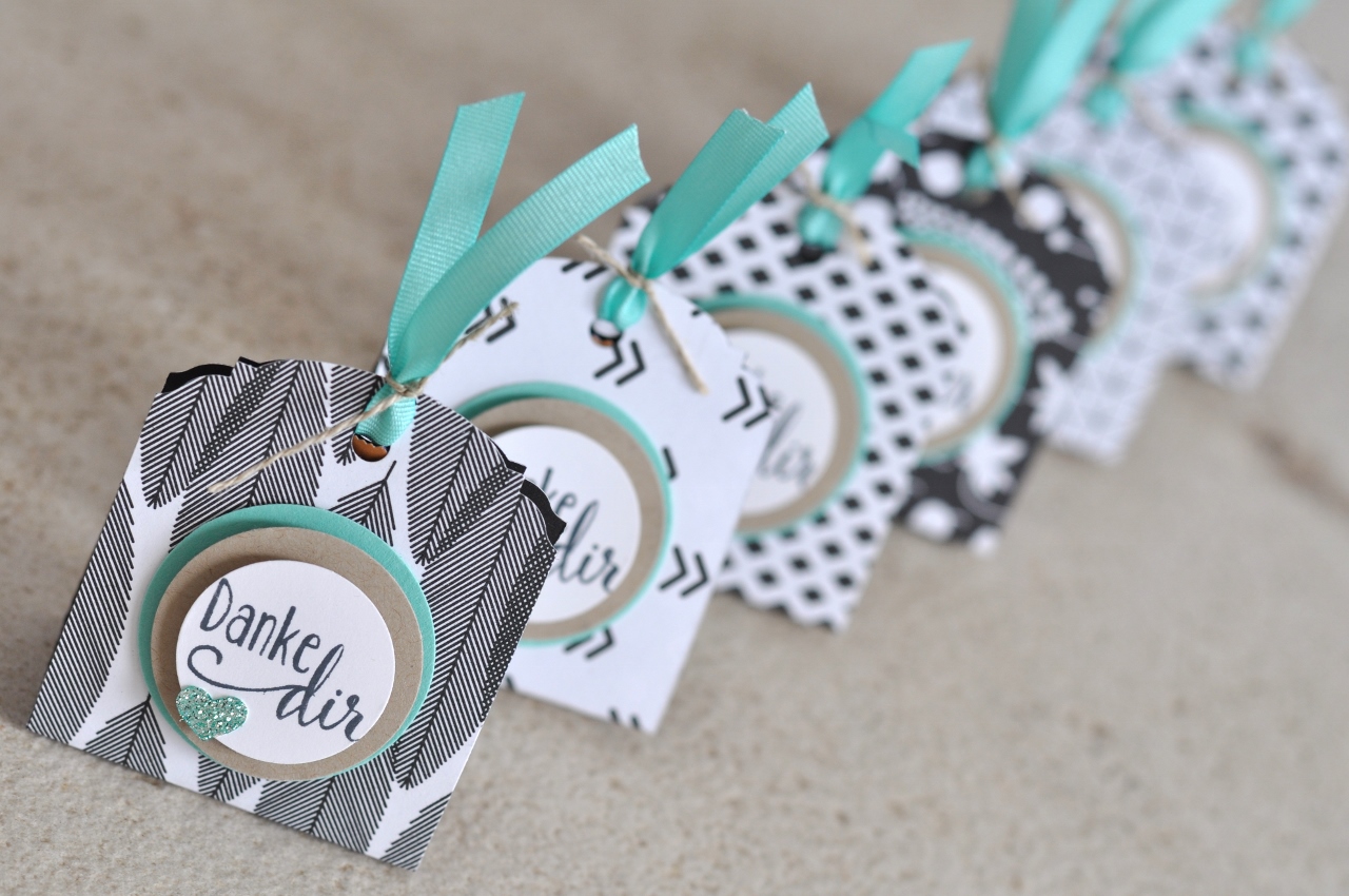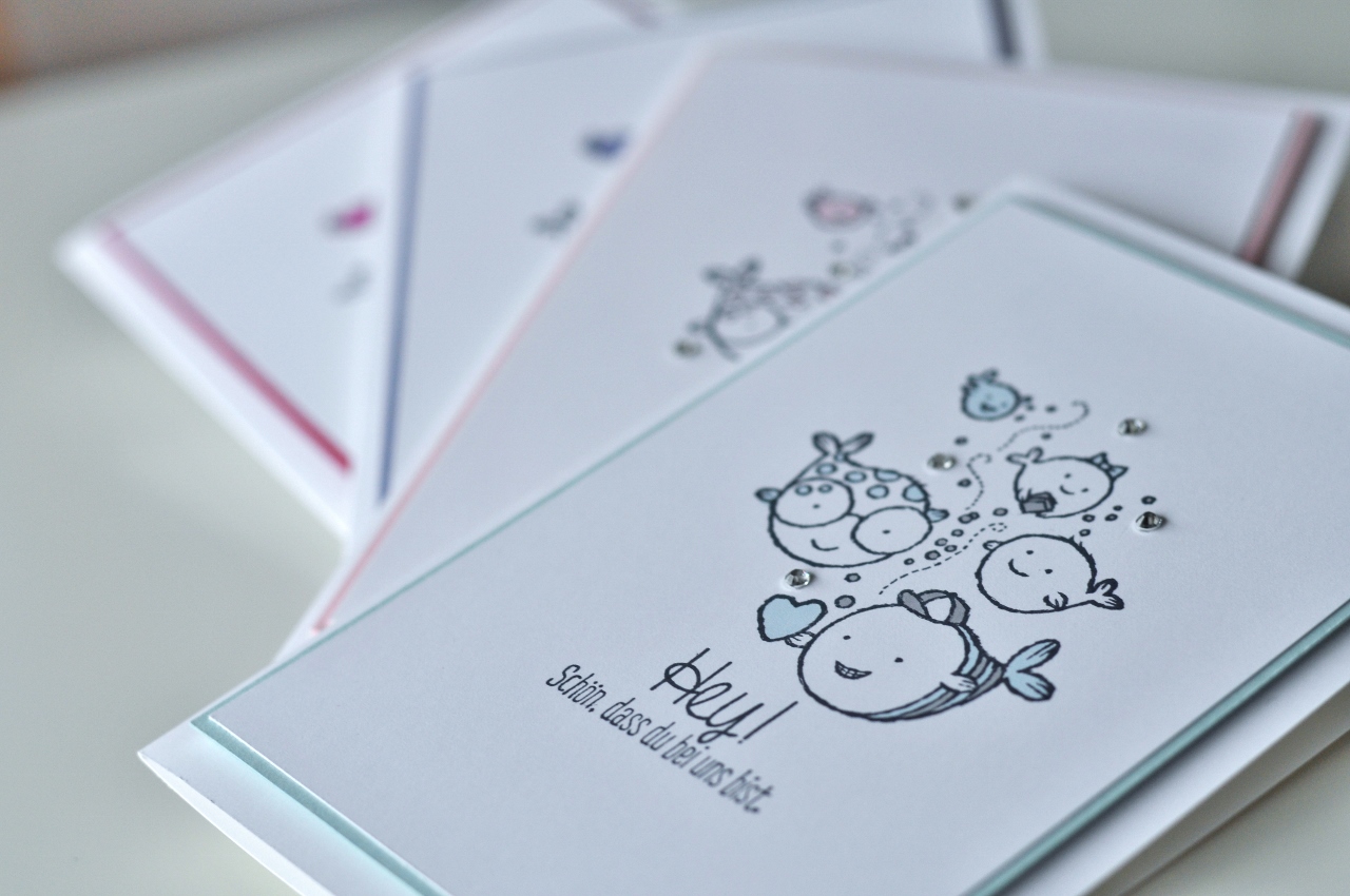 Aus der Sale-a-Bration stammt auch das elegante weiße Designerpapier "Zauberhaft", das ihr bei diesen Karten im Hintergrund seht.