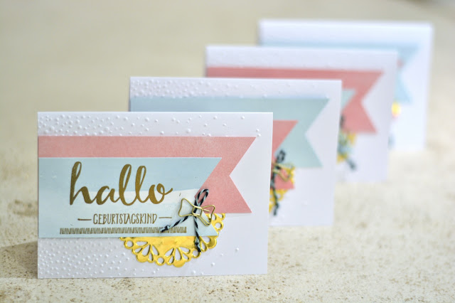 Diese hier haben wir mit dem Sale-a-Bration-Set "Hallo" gefertigt. Wenn dir dieses Set gefällt, dann heißt es schnell sein, denn das Set gibt es nur noch bis 15.Februar für eine Bestellung von 60€ gratis zu haben!